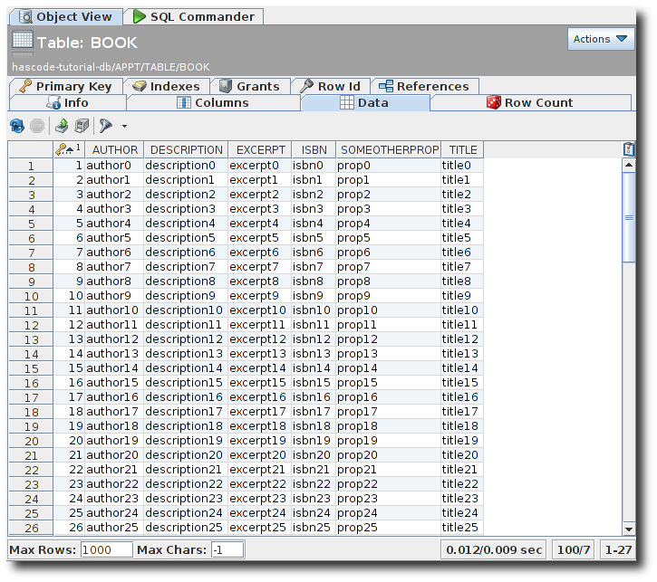 If you take a look in the derby database there should be 100 books as shown in the following screenshot.