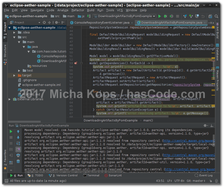 git clone https://github.com/hascode/eclipse-aether-example.git