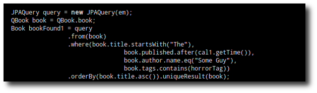 Querydsl is a framework that allows us to create elegant, type-safe queries for a variety of different data-sources like Java Persistence API (JPA) entities, Java Data Objects (JDO), mongoDB with Morphia, SQL, Hibernate Search up to Lucene. In the following tutorial we’re implementing example queries for different environments – Java Persistence API compared with a JPQL and a criteria API query, mongoDB with Morphia and last but not least for Lucene. ...
